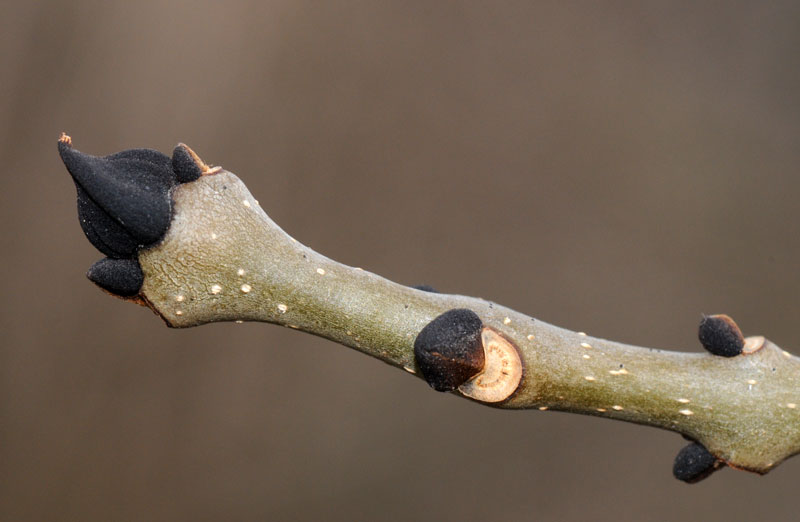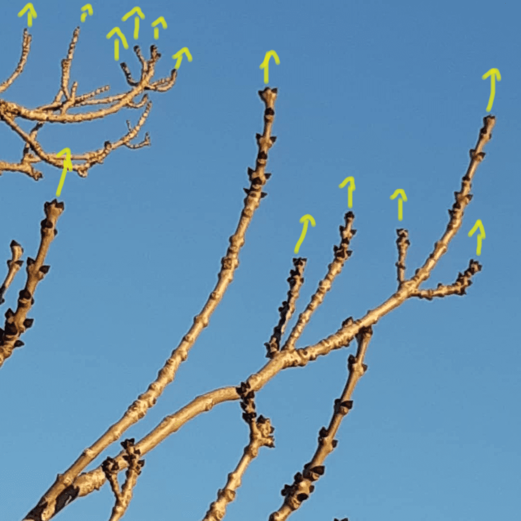 – Si les frênes ne sont pas hauts : on peut reconnaitre les bourgeons noirs très facilement (ça fait comme un sabot de chèvre ou une patte d’ours selon ton imagination)