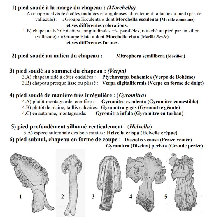 – gyromitre et verpe = chapeau veiné (à gauche)
